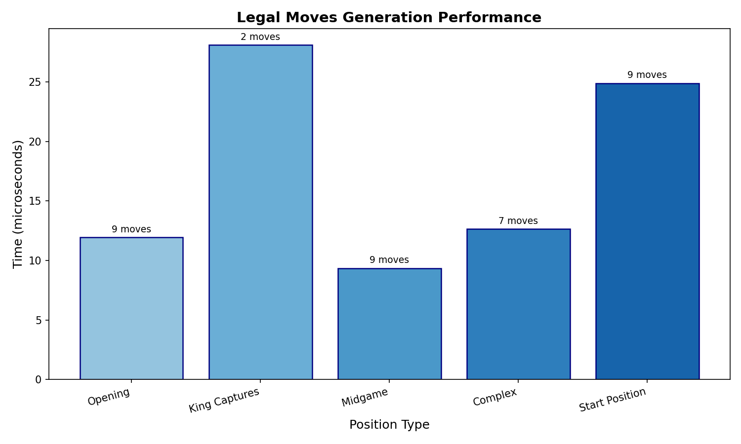 Performance of the legal moves generator across different board positions: